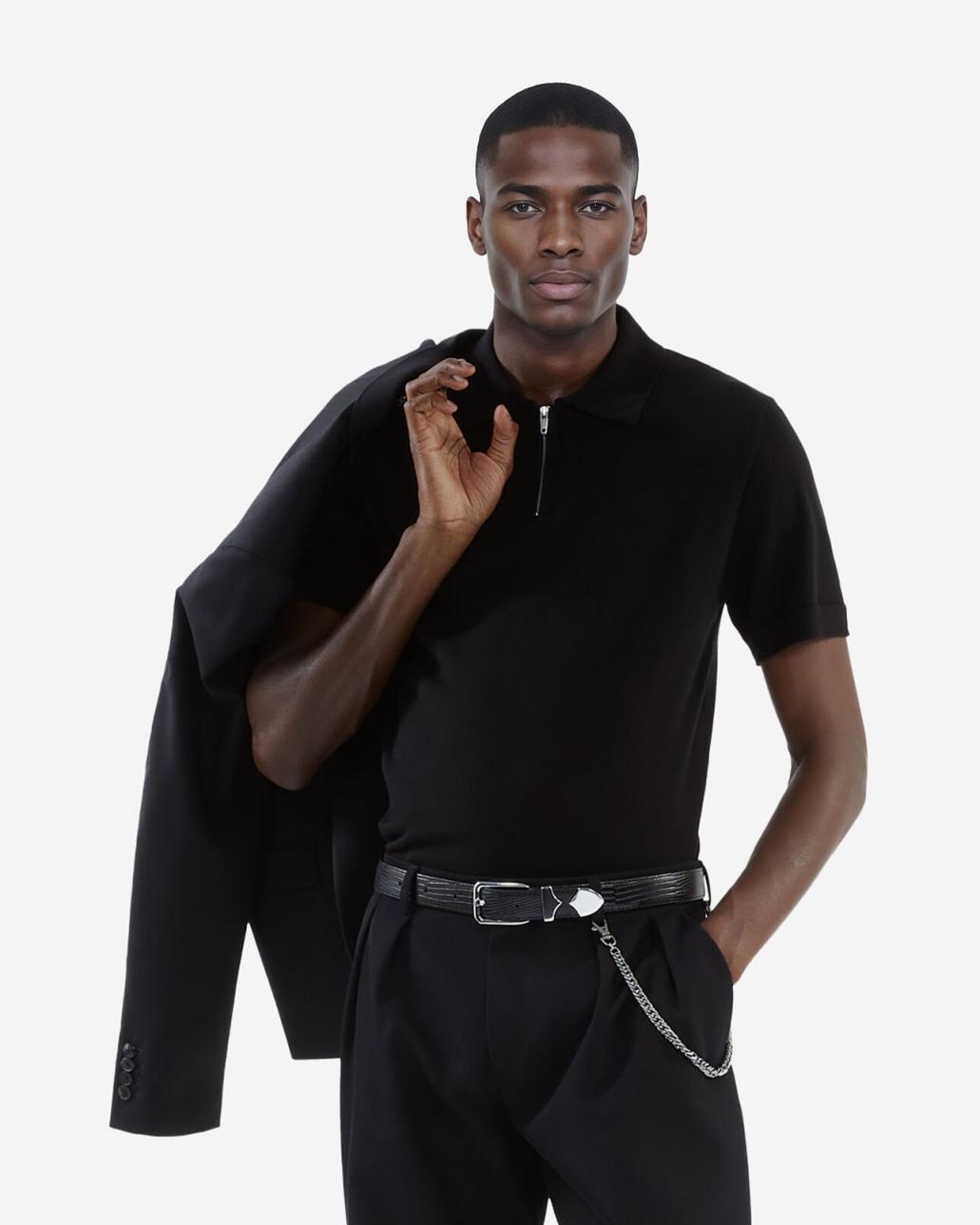 Le mannequin mesure 188 cm et porte le produit en tailleM. Référence : HPUL30016KBLA01 Pull homme The Kooples Coupe ajustée Col classique avec zip Manches courtes Broderie TK ton sur ton Coupe slim. Si vous hésitez entre deux tailles, choisissez la taille au-dessus