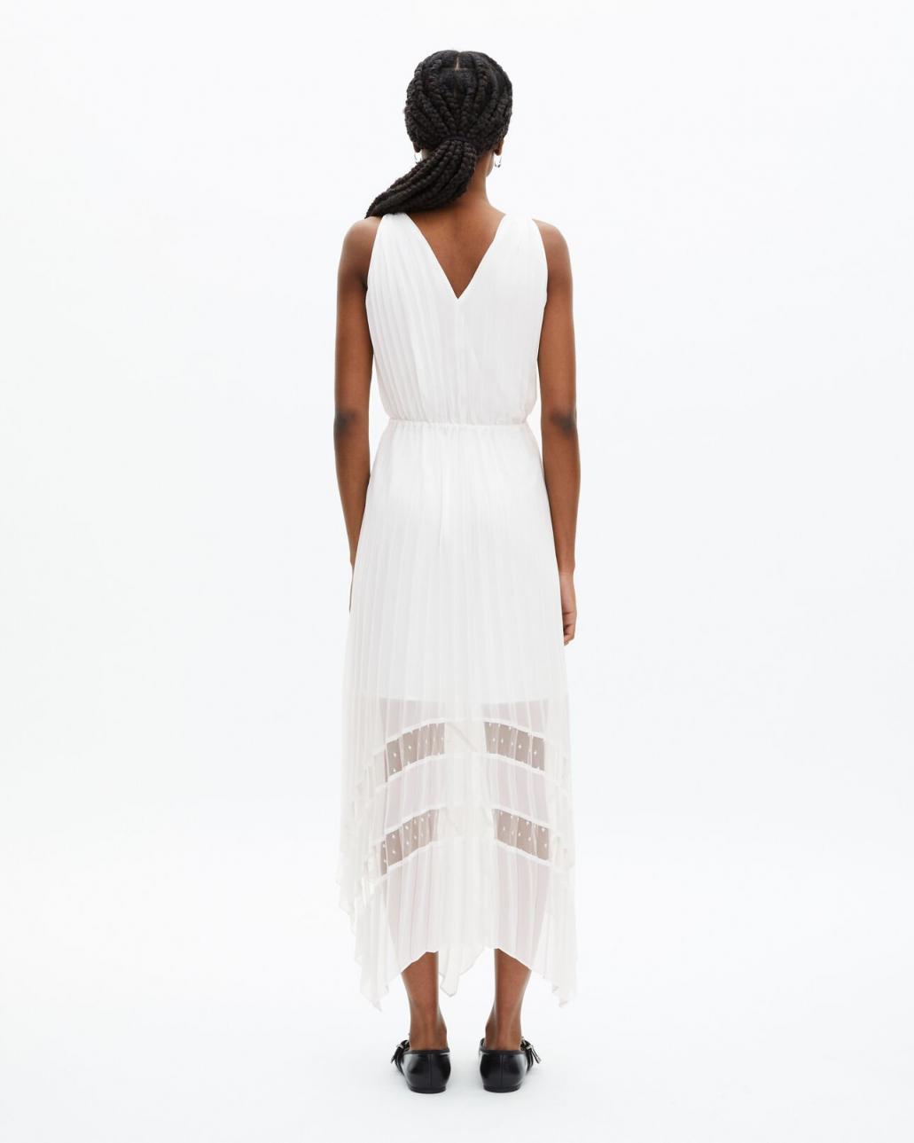 Le mannequin mesure 175 cm et porte le produit en taille1. Référence : FROB28179KECR01 Robe femme The Kooples Robe ajustée Décolleté en V avec boutonnage fantaisie Sans manches Taille élastiquée Robe doublée Bas plissé soleil avec plumetis Longueur 135cm pour une taille 36