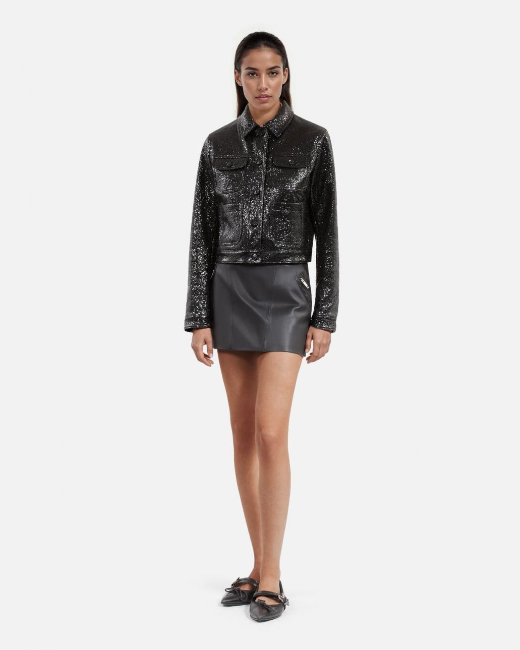 Le mannequin mesure 178 cm et porte le produit en taille1. Référence : FBLO30018KBLA01 Blouson femme The Kooples Coupe droite Col classique Manches longues Boutons aux poignets Boutonnage devant Poches plaquées et à rabat Coupe ajustée. Si vous hésitez entre deux tailles, choisissez la taille au-dessus